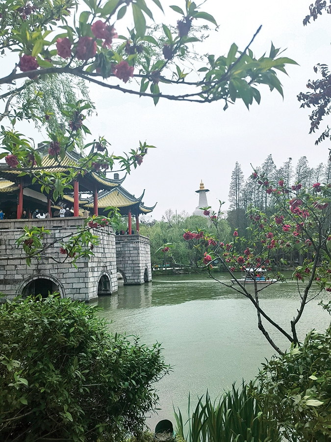 整個行程中讓團員印象最深刻的是聞名遐邇的揚州瘦西湖。一進入風景區(qū),大家就被眼前的美景深深吸引。正值春光三月,桃紅柳綠,百花盛開,競相爭艷,鶯歌燕舞,一切就像教科書上描述的美景。瘦西湖風景區(qū)里亭臺樓閣與小橋流水相呼應,幾步換一景,目光所及之處風景秀麗。湖面上天鵝與鴨子相互戲水,船上的游人隨船漂流欣賞著兩岸的美景,船在水中游,人在畫中走。船上的游客還不時跟岸上的游客相呼迎合對唱,大家都十分開心。不知不覺就到了中午時分,當導游叫大家集合出門時,大家都不舍這美麗風景,紛紛表示:“明年還來,三月再約揚州!
