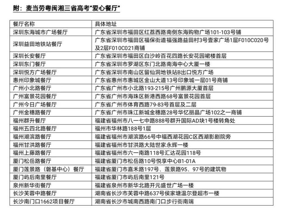 高考日三天,粵閩湘三省麥當(dāng)勞免費(fèi)麥滿分早餐力挺高考生