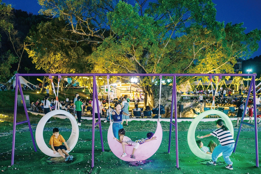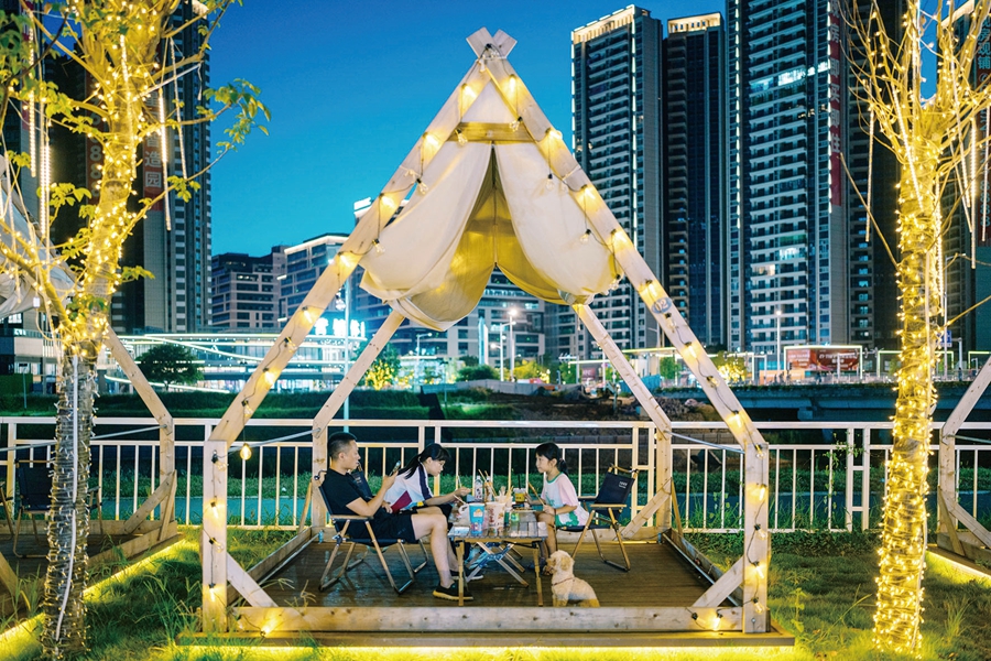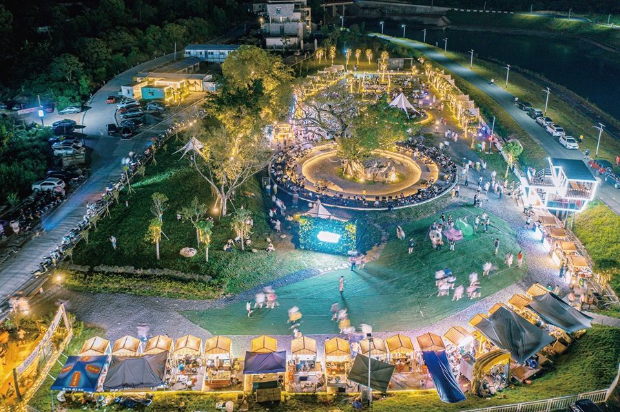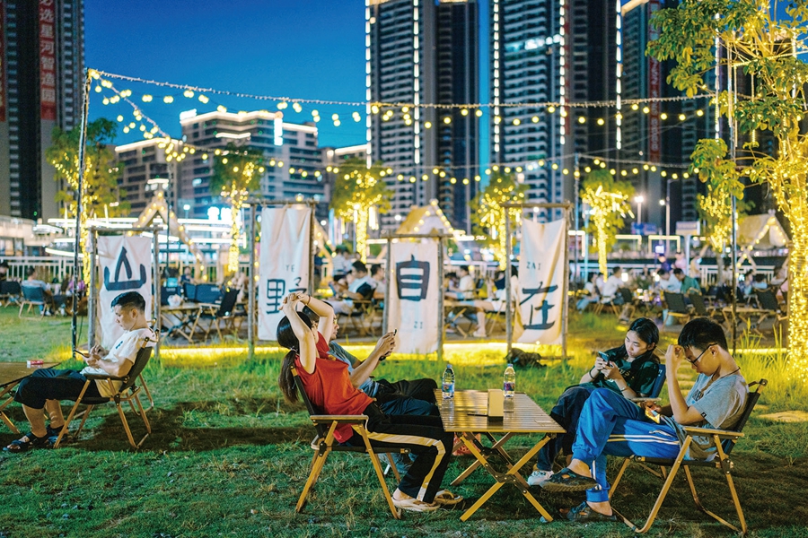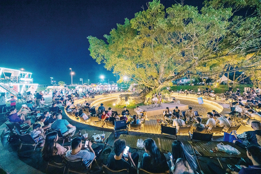 在營(yíng)地周圍,還有別具一格的創(chuàng)意集市。就著琳瑯滿目的燒烤美食和各色飲品,市民們?cè)诖讼硎芤魳?lè)、放飛激情、釋放壓力,度過(guò)難忘而愉悅的夜晚。