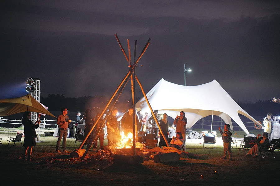 東江邊營地里的篝火晚會。
