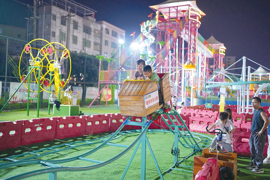 小朋友們在夜間游樂場所快樂地玩耍。