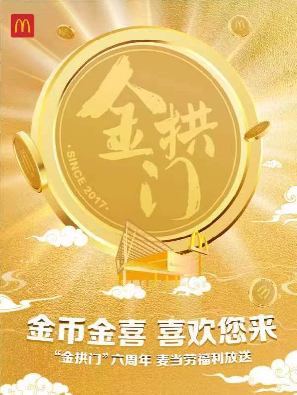8月8日,麥當(dāng)勞中國(guó)慶!敖鸸伴T”成立六周年,邀請(qǐng)消費(fèi)者一起參與“金喜金幣金拱門”會(huì)員福利放送活動(dòng)。2017年8月8日,麥當(dāng)勞與中信股份、中信資本和凱雷投資集團(tuán)達(dá)成戰(zhàn)略合作,麥當(dāng)勞中國(guó)進(jìn)入更本地化發(fā)展的“金拱門”時(shí)代。為答謝消費(fèi)者對(duì)“金拱門”的喜愛與信任,麥當(dāng)勞中國(guó)還特地定制了8枚80克足金紀(jì)念金幣,并在8月8日開始,連續(xù)三天推出一系列優(yōu)惠活動(dòng),回饋消費(fèi)者。