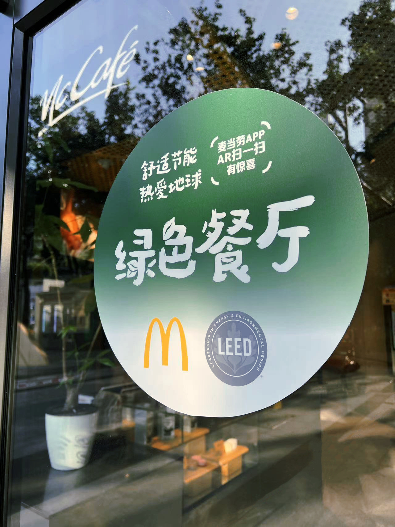 麥當(dāng)勞中國宣布綠色餐廳突破2500家,并在餐廳主入口貼上了嶄新的“綠色餐廳”標(biāo)識