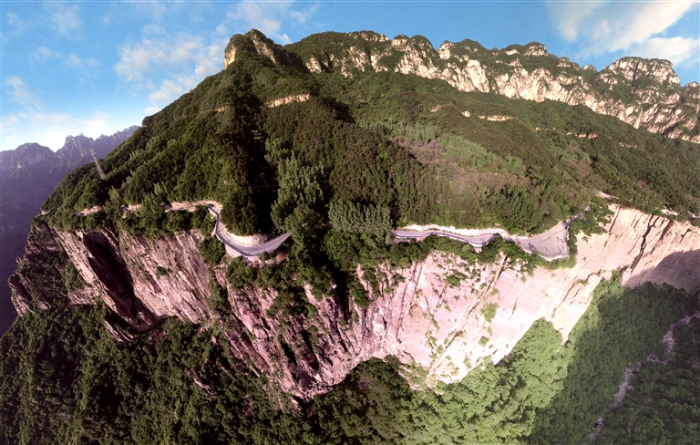 被譽(yù)為“太行明珠”“華夏奇觀”。山上的絕壁長(zhǎng)廊掛壁公路郭亮洞,被稱為“世界第九大奇跡”。公路由郭亮村人純手工開鑿,歷時(shí)5年,長(zhǎng)1320米,體現(xiàn)了自強(qiáng)不息的奮斗精神。郭亮村位于1700米懸崖上,號(hào)稱“中國(guó)最危險(xiǎn)的村莊”,2002年,國(guó)家一級(jí)導(dǎo)演馮小寧執(zhí)導(dǎo)的電影《舉起手來(lái)》拍攝地,就在郭亮影視村。