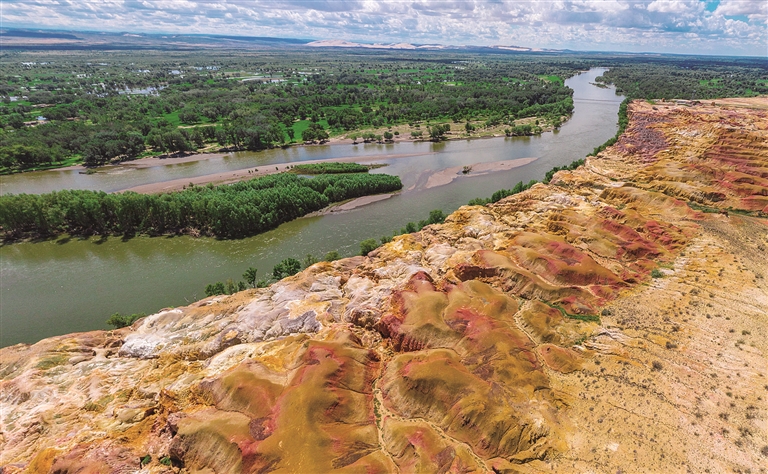 額爾齊斯河的猛烈沖擊,當(dāng)?shù)氐目耧L(fēng)侵蝕,形成了五彩灘懸崖式的雅丹地貌。因河岸巖層抗風(fēng)化能力強弱不一,輪廓參差不齊,讓富含各種礦物質(zhì)的巖石裸露,在陽光下幻化出種種異彩,因而得名“五彩灘”。每當(dāng)刮風(fēng)時,溝壑里、巖石下,到處都會發(fā)出長短不一、高低不同的怪叫聲。
