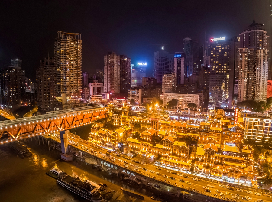 輝煌的燈火配著古香古色的洪崖洞美不勝收。