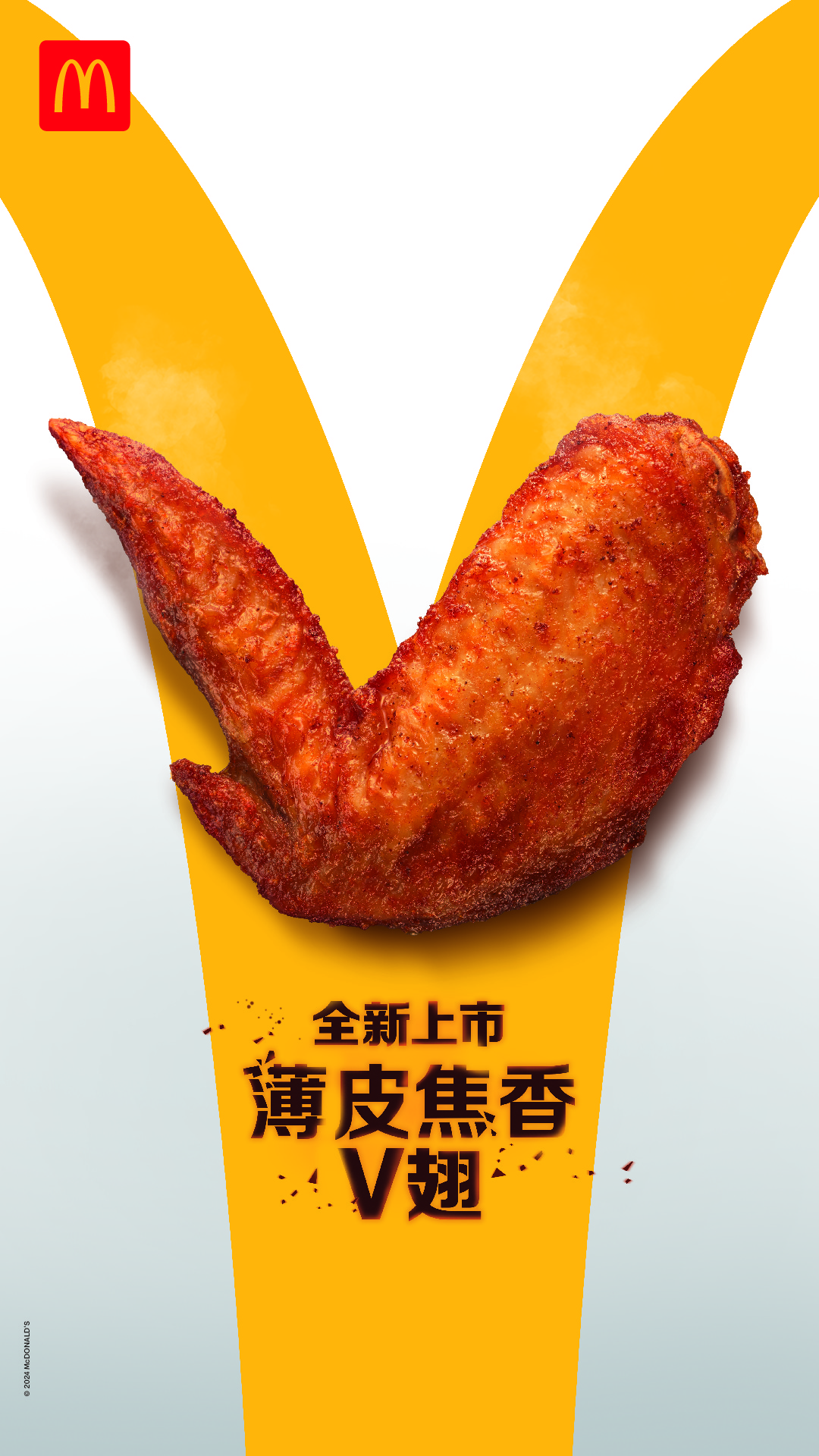 選用“無(wú)籠好雞”的薄皮焦香V翅6月26日全國(guó)麥當(dāng)勞餐廳上市