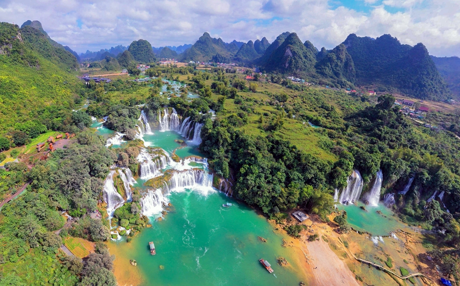 德天瀑布景觀橫跨中國、越南兩個國家。
