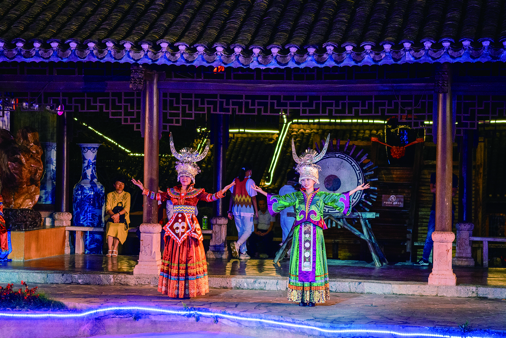 苗寨白水河上,八座風(fēng)雨橋依次排列。婀娜多姿的苗家姑娘,倚靠在橋上的美人靠,身姿曼妙。白水河邊,隨處可見的苗族歌舞、服飾,為這里增添濃厚的民族風(fēng)情。