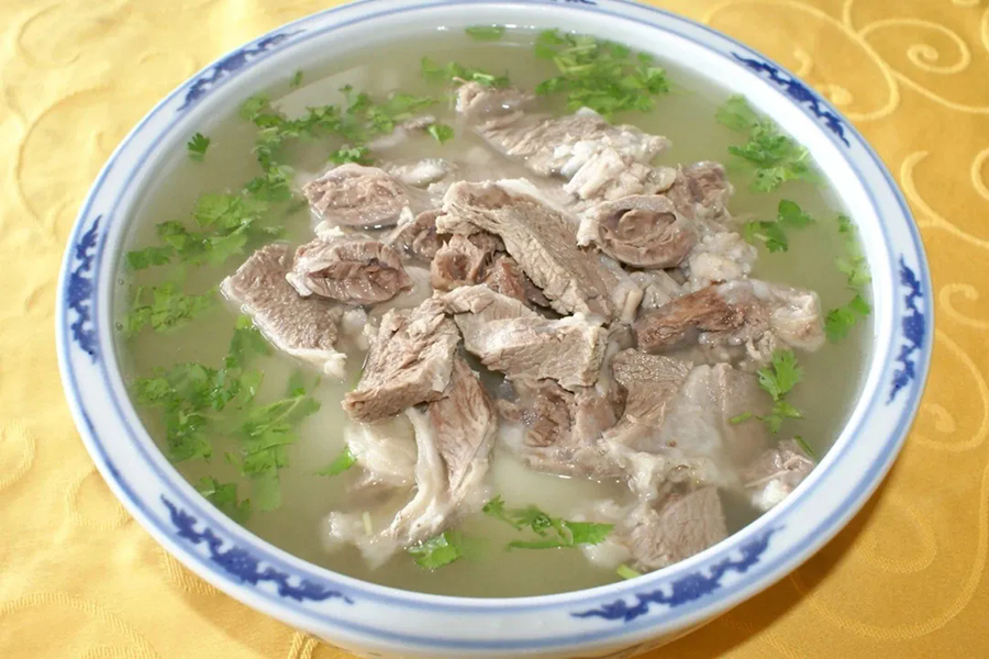 萊蕪羊湯是萊蕪特色名吃,號稱“中華第一湯”,以當?shù)貎?yōu)質(zhì)羊肉為原料,精心熬制而成,白如奶,味道醇厚鮮美,營養(yǎng)豐富,有暖胃驅(qū)寒的功效。