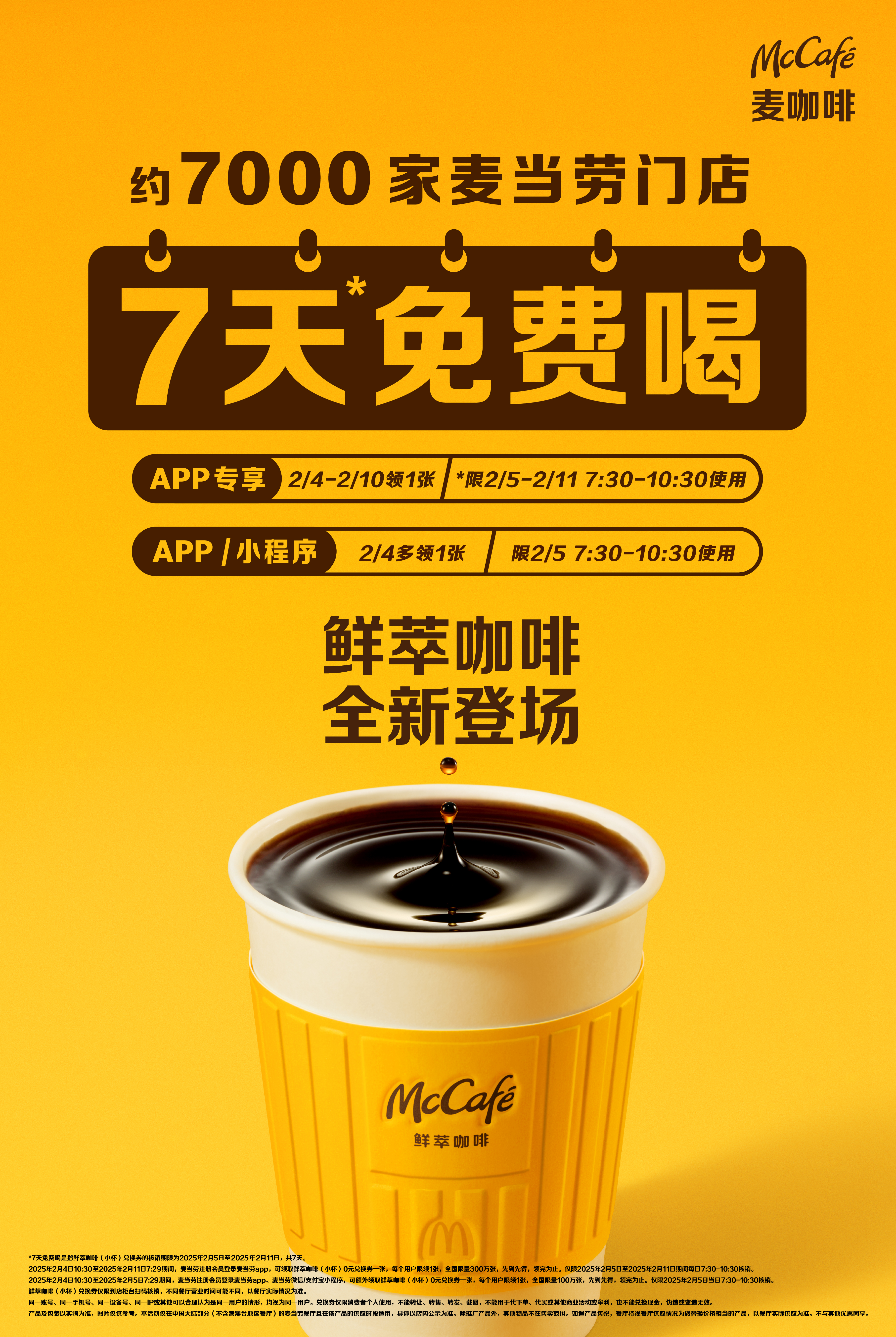 2月5日起,麥當(dāng)勞開展為期一周免費(fèi)贈(zèng)飲鮮萃咖啡活動(dòng)