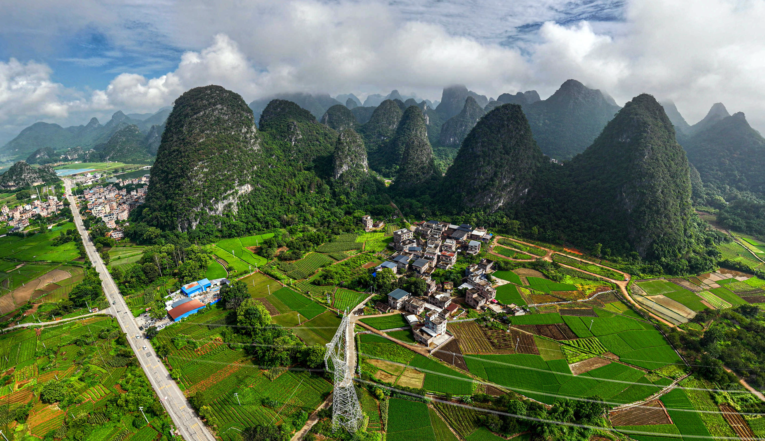 地處賀州市鐘山縣,被《中國國家地理》評為“中國十大最美峰林”之一。秋日里,琉璃菊、百日草、三角梅等花卉花開成海,喀斯特峰林如千重劍戟指天、萬排玉筍鋪空,山水田園與古村落相融,盡顯“山水相依的畫廊、風(fēng)華絕代的丹青”之美。