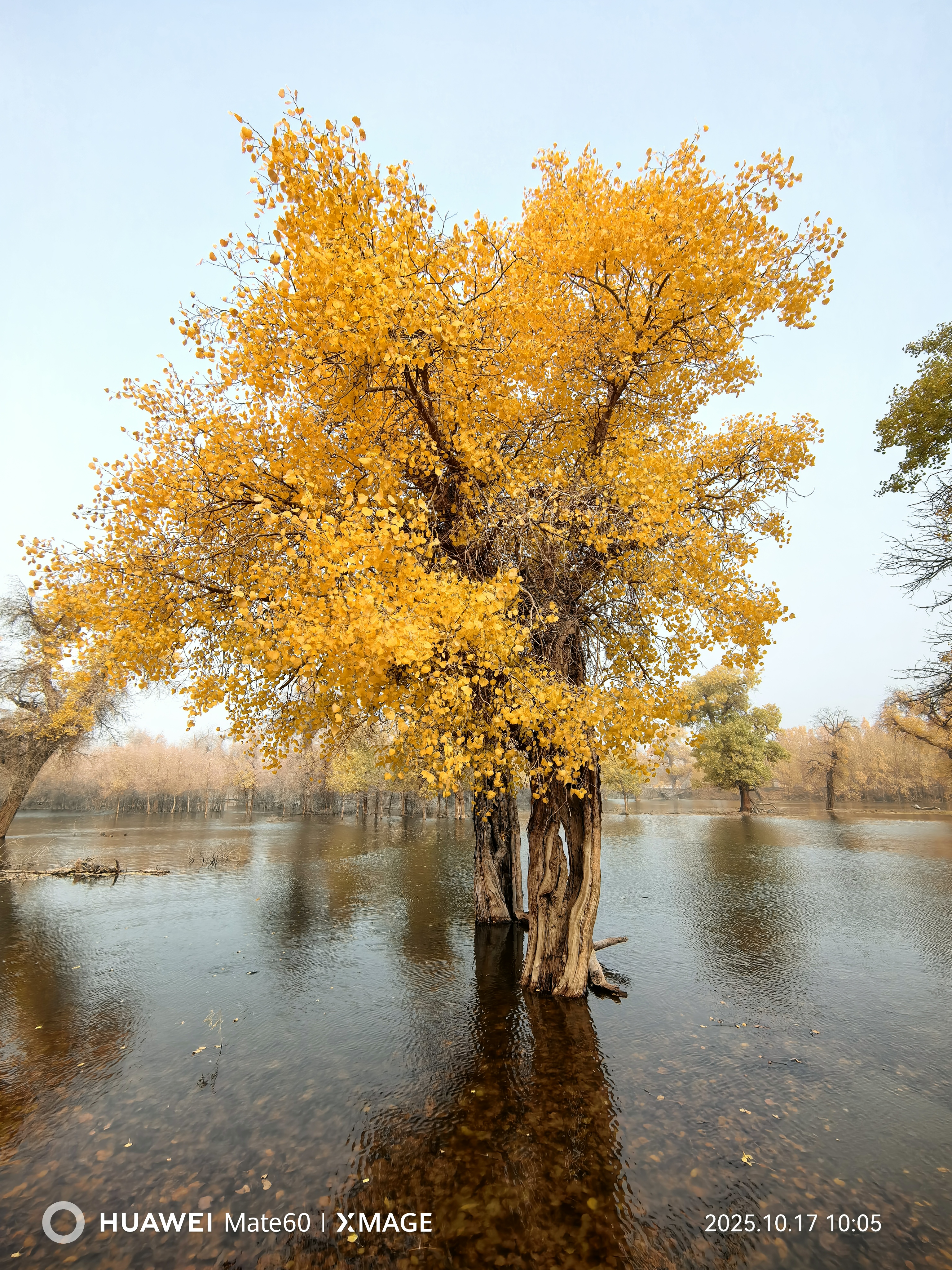 額濟(jì)納枝繁葉茂的水中胡楊林。
