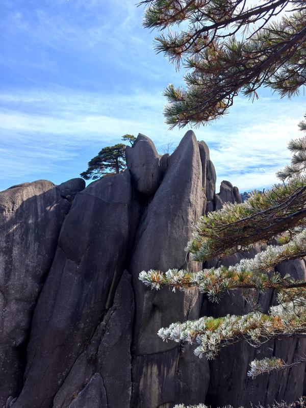 第四天重頭戲:登黃山。大美黃山依然歲月繾綣葳蕤生香,英姿挺拔傲視群雄。昨晚溫度驟降產生的霧凇今朝陽光照耀下熠熠生輝,隊友們個個摩拳擦掌全力以赴。纜車緩緩上升,所見之處皆是突兀的青黑巨石上一大片一大片的不老松,尉為壯觀。包括6位70歲長者在內27人全體通過崎嶇陡峭的“好漢坡”,在聞名遐邇的迎客松前留下自己的形象。登上光明頂?shù)?7位勇士有7位60歲以上,他們在布滿冰晶與霧凇的蜿蜒狹窄道路上奮勇前行。隊友們團結互助相互攙扶互相配合,征服奇山險峰挑戰(zhàn)自我,夢想成真不留遺憾……聽,凱旋歸來的笑聲多么爽朗,江山如畫我們亦是豪杰。