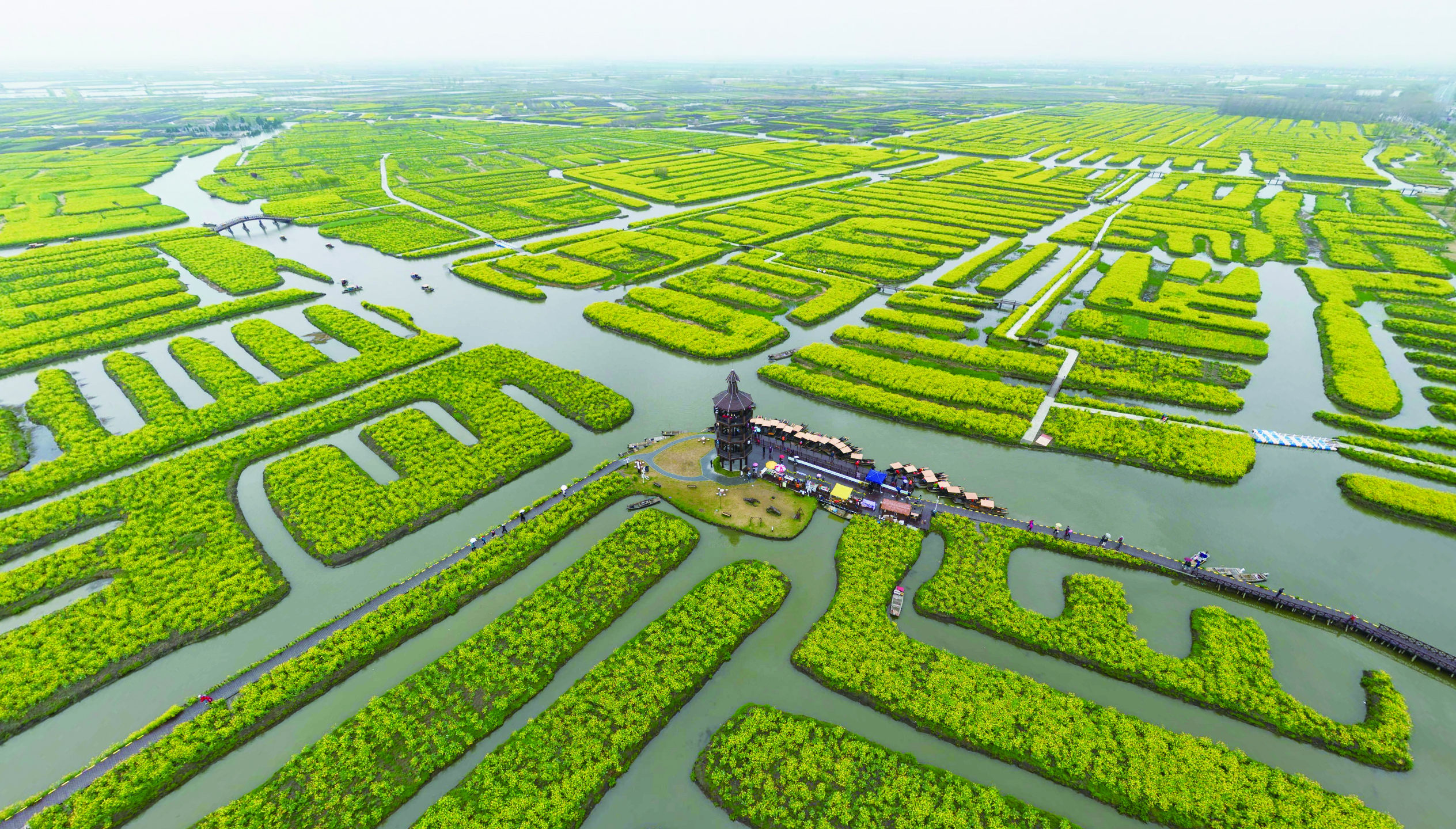 這里是獨(dú)具特色的“水上花!。每年清明前后,數(shù)千畝油菜花在水網(wǎng)交織的垛田上競相綻放,金黃一片,蔚為壯觀。游客可乘坐古樸的小木舟,穿行于蜿蜒水道之間,四面花香撲面而來。登高望遠(yuǎn),滿目金黃如錦氈覆地,蜂飛蝶舞,是春日里最震撼的視覺盛宴。