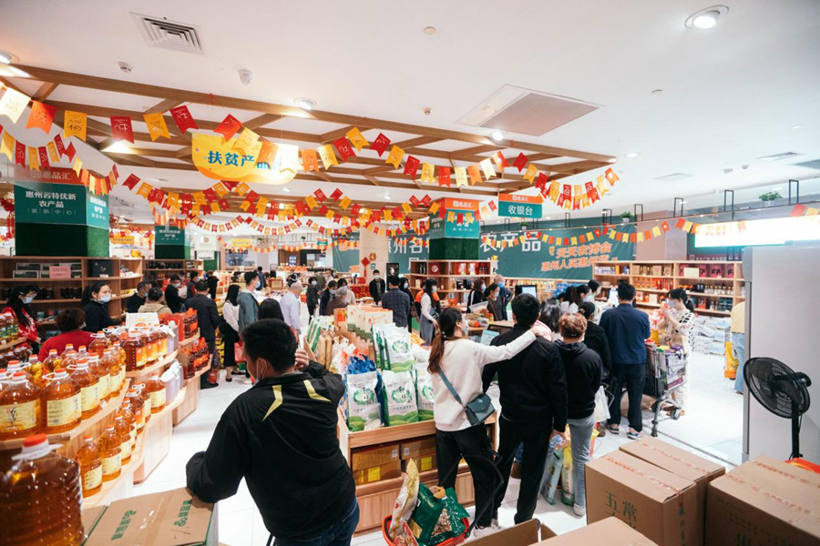 惠州名特優(yōu)新農(nóng)產(chǎn)品展銷中心位于惠州市區(qū)江北核心商業(yè)區(qū),由惠州市農(nóng)業(yè)農(nóng)村局、惠州市鄉(xiāng)村振興局主辦,惠州報(bào)業(yè)傳媒集團(tuán)承辦。展銷中心于2020年6月30日正式開(kāi)業(yè),并與“惠品匯”消費(fèi)幫扶電商平臺(tái)緊密結(jié)合,對(duì)全市的扶貧名優(yōu)特新產(chǎn)品進(jìn)行線上+線下集中展銷,是展銷全市七個(gè)縣區(qū)名優(yōu)農(nóng)特產(chǎn)品最集中、最全面的平臺(tái),于2020年底被授予“廣東省消費(fèi)扶貧創(chuàng)業(yè)創(chuàng)新基地(惠州)稱號(hào)”。目前,展銷中心已上架銷售來(lái)自惠州、東西部協(xié)作幫扶農(nóng)特產(chǎn)品超過(guò)1800種,自開(kāi)業(yè)以來(lái)農(nóng)特產(chǎn)品銷售額逾千萬(wàn)元,為脫貧攻堅(jiān)、鄉(xiāng)村振興注入了強(qiáng)勁的內(nèi)生動(dòng)力。今年,展銷中心陸續(xù)加掛了“惠州手信旗艦店”、“惠州鄉(xiāng)村振興農(nóng)產(chǎn)品展銷中心”牌匾。同時(shí),展銷中心也于2021年6月新建了“黔西南州農(nóng)產(chǎn)品惠州直營(yíng)旗艦店”專區(qū),全面推進(jìn)惠州與貴州省黔西南州的協(xié)作,目前已上架銷售黔西南州近3百款特色名優(yōu)農(nóng)產(chǎn)品。擬通過(guò)黔西南專館的建設(shè),健全幫扶機(jī)制、完善幫扶舉措,為黔西南州鞏固拓展脫貧攻堅(jiān)成果、惠州全面推進(jìn)鄉(xiāng)村振興貢獻(xiàn)更大的力量。