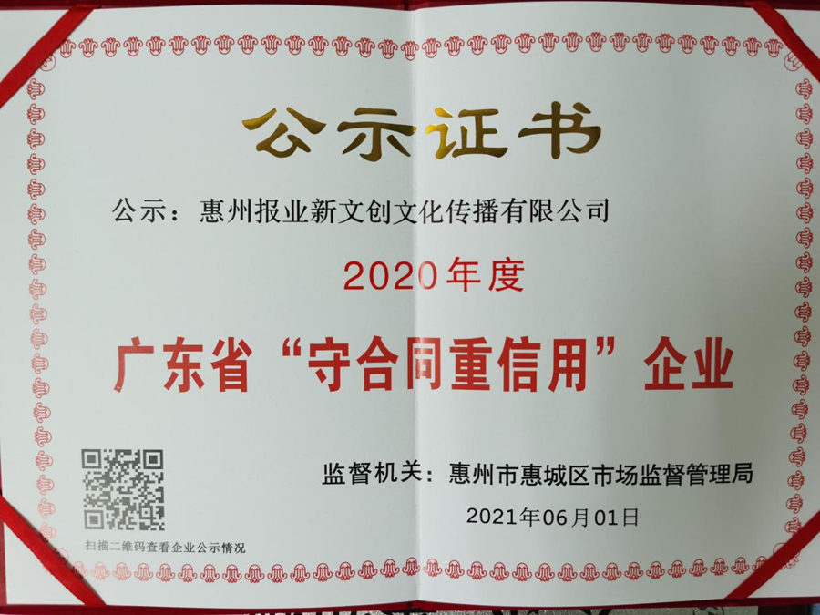 2019年,新文創(chuàng)公司開始涉足電子商務(wù)領(lǐng)域,推出“惠品匯”線上購物平臺(tái),面向惠州本地品牌商家全面開放合作,助力本地企業(yè)發(fā)展,通過“電商扶貧、消費(fèi)助農(nóng)”等手段實(shí)現(xiàn)政商平臺(tái)搭建、品牌產(chǎn)品分銷、媒體資源整合的運(yùn)營新模式。2020年,新文創(chuàng)公司投資建設(shè)了“惠州名特優(yōu)新農(nóng)產(chǎn)品展銷中心”,該展銷中心是目前惠州唯一的“廣東省消費(fèi)扶貧創(chuàng)業(yè)創(chuàng)新基地”,自2020年6月30日開業(yè)至2021年6月,已銷售惠州農(nóng)特產(chǎn)品超1500萬元,為扶貧攻堅(jiān)、鄉(xiāng)村振興注入了強(qiáng)勁的內(nèi)生動(dòng)力。新文創(chuàng)公司也因此獲評“2020年廣東省消費(fèi)扶貧突出貢獻(xiàn)單位”稱號(hào)。此外,因公司誠信經(jīng)營,新文創(chuàng)公司也榮獲2020年廣東省“守合同重信用”企業(yè)的稱號(hào)